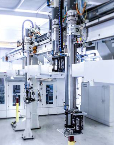 The H-Loader has two independent arms with grippers arranged in parallel on one axis. The distance between the arms is fixed. Ideal for long shafts/crankshafts or cubical parts, where a swivel gripper cannot be used.